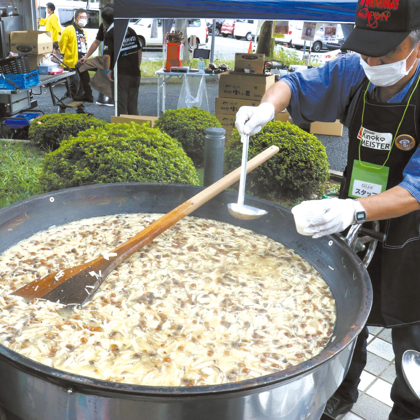 長野県のご当地食材「えのき氷」を使った、栄養満点のきのこ汁を無料でふるまいます。