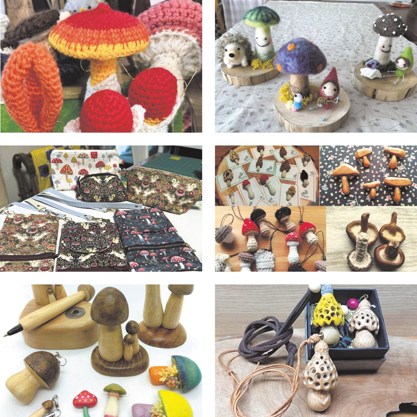 県内外のクラフト作家が集結し、きのこをモチーフにした雑貨やアクセサリー、