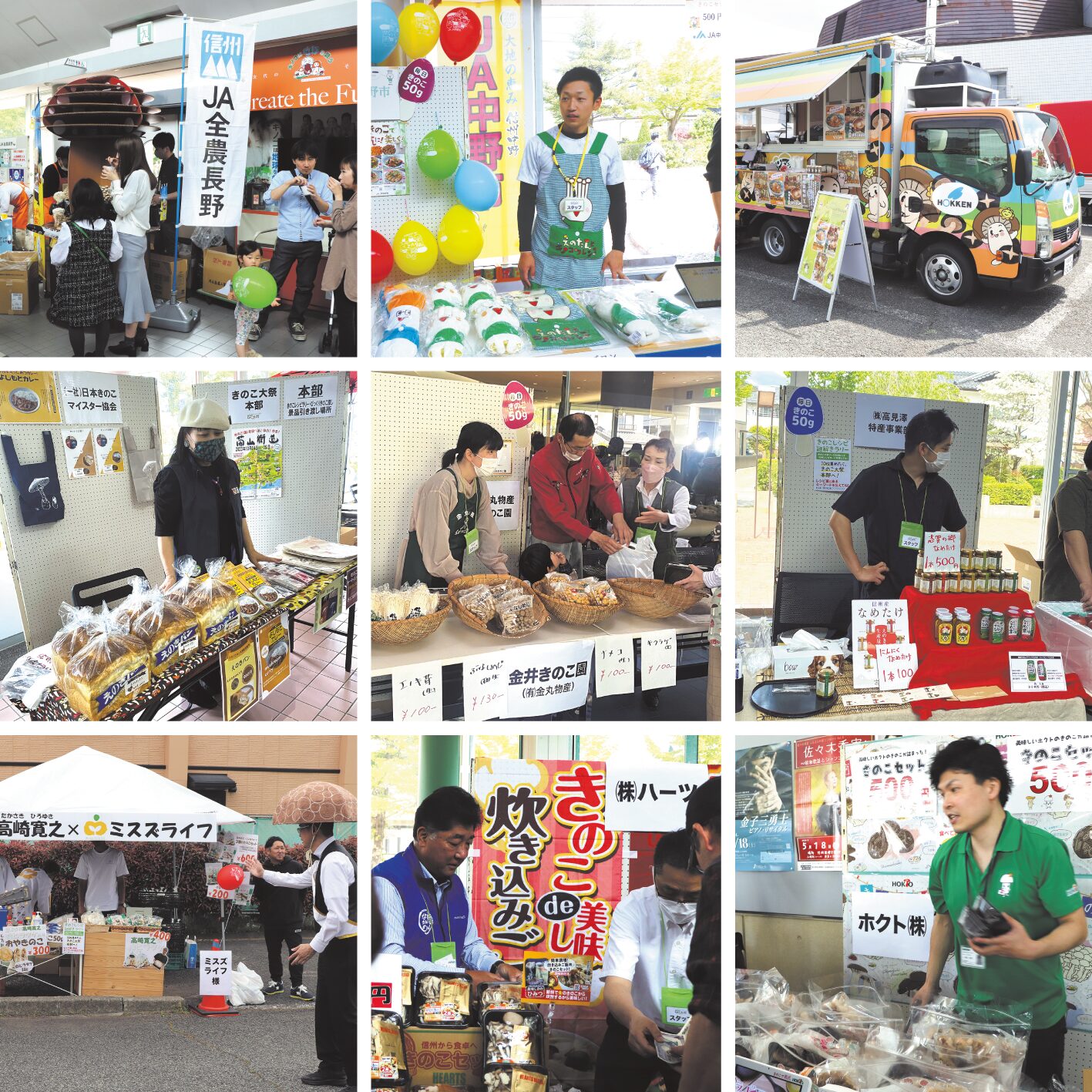 きのこのプロたちが一堂に集い、それぞれが考案した絶品メニューや加工品を販売。