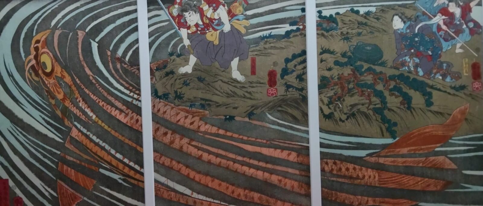 三枚の画面で一場面を描く迫力の構図は、国芳の革新性を如実に伝えるもの。