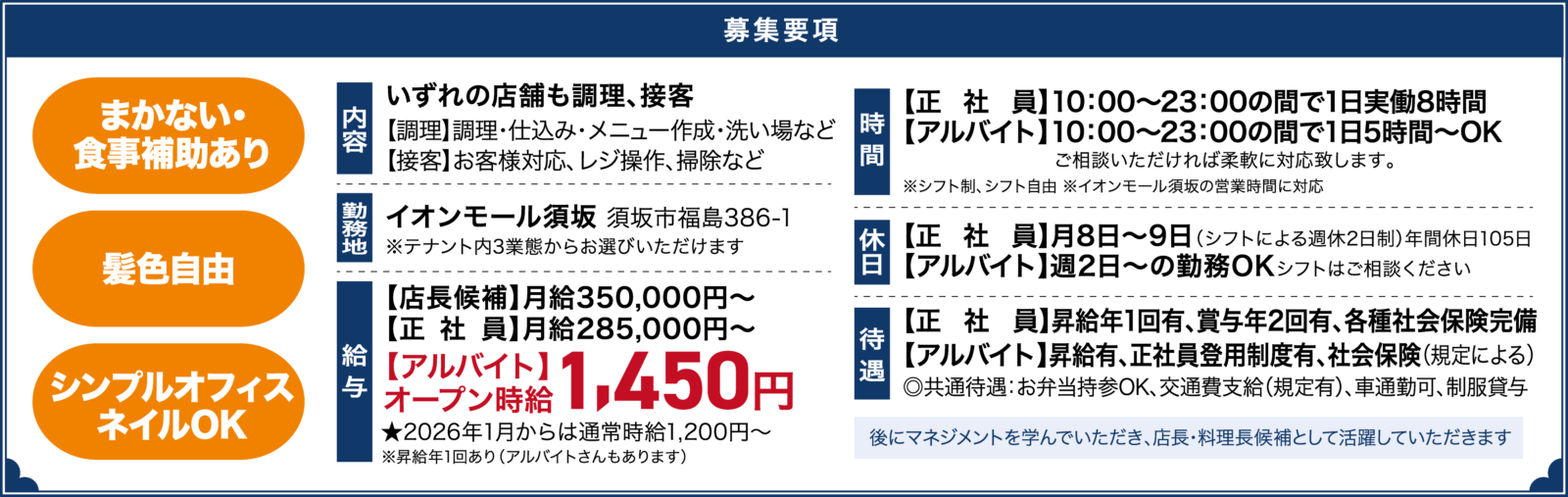 #須坂市求人 #イオンモール須坂 #長野求人 #飲食バイト #海鮮丼 #焼き鳥 #うどん #主婦パート