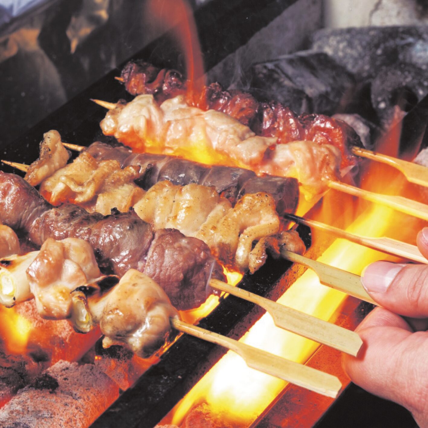 炭火で丁寧に焼き上げた串を通して、お客様との会話や笑顔を楽しめる温かい雰囲気です。