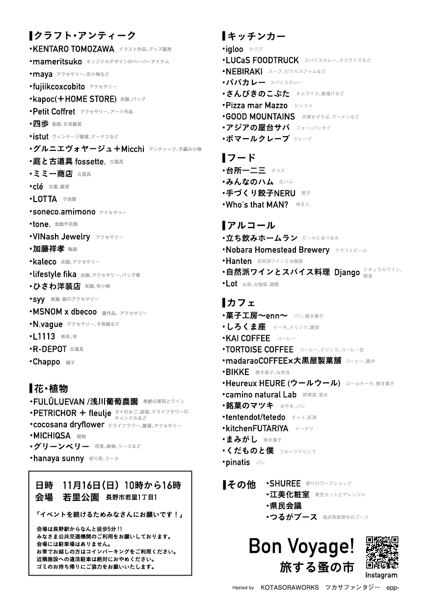 長野市若里公園(ホクト文化ホール隣)にて、2025年11月16日(日)、マーケットイベント『Bon Voyage! 旅する蚤の市』が開催されます。