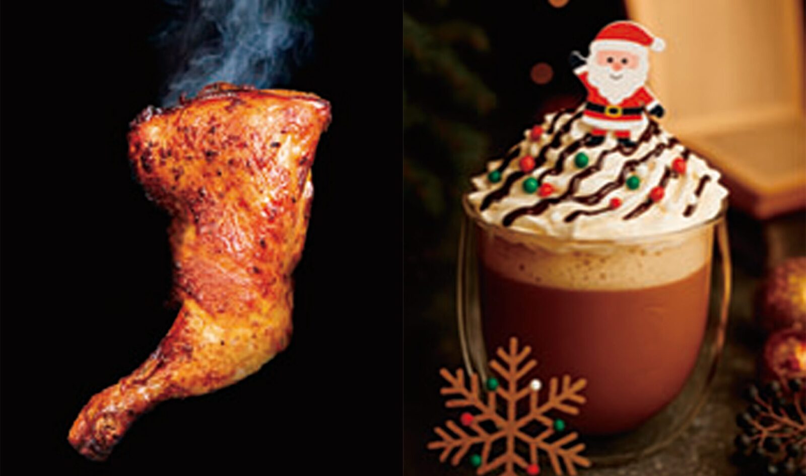 ホットチョコレート、クリスマスチキン、