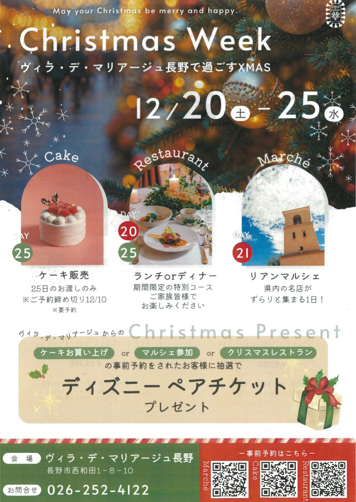 🎄 Christmas Week 2025  — ヴィラ・デ・マリアージュ長野で過ごす、特別なクリスマス —