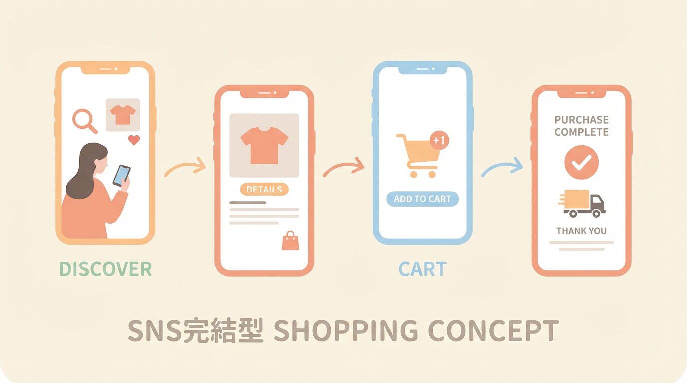 SNS外へ誘導せず、発見→情報収集→比較→購入→決済までをすべてアプリ内で完結させる流れが主流になっていくのです。