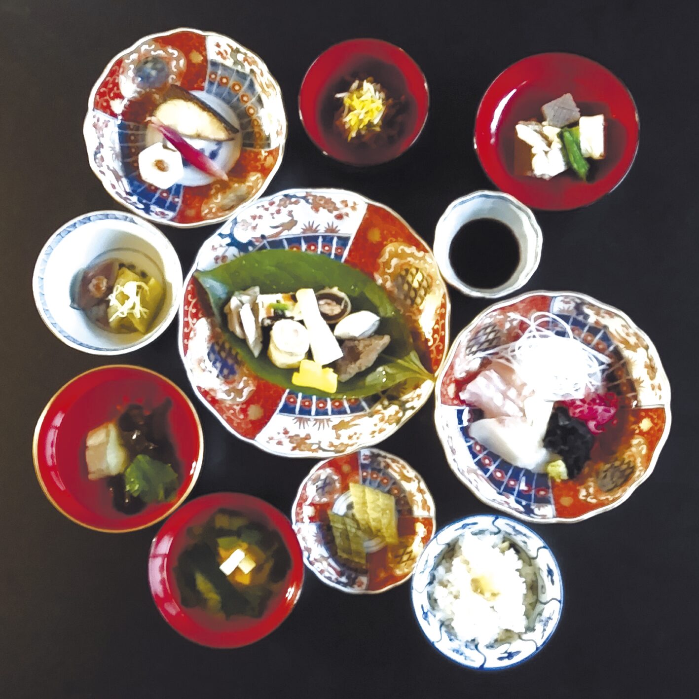 お食事は、華やかな高蒔絵が施された「硯蓋」をはじめ、